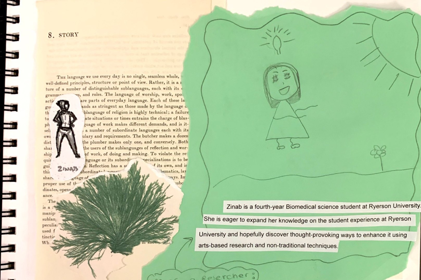 Reflecting back on the focus groups, on our methodology, and these past few months, I think that our method thus far, has definitely allowed for narratives to emerge from all of our participants. Arts based research is a creative and critical form of doing research, of inquiring and accessing knowledge and it has enabled our participants to actively participate in our research. We have created a dual process where we are not simply observing participants, but that they are honorary researchers helping us gain a better understanding of the student experience through their artistic expressions (collages). I believe we should still focus on our original research question and try to gain a better understanding of the dissonance between students “expectations” and “lived” experience at Ryerson.