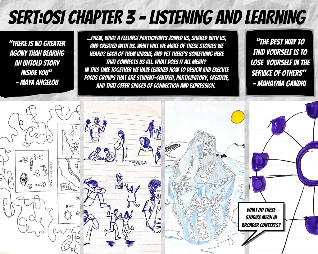 To begin, the OSI hired one of the co-creators of the SERT, Tesni Ellis, to build and lead a research cohort of students who would spend their field placement taking on a piece of the Degrees of Debt project. Previous studies led by two interdisciplinary undergraduate SERT groups were concerned with topics of student engagement, belonging, well-being, persistence, and transition, topics that we knew intersected with our questions about the impact of debt on students’ experiences. SERT’s original founding principles aligned well with the OSI’s approach, so SERT:OSI was born.